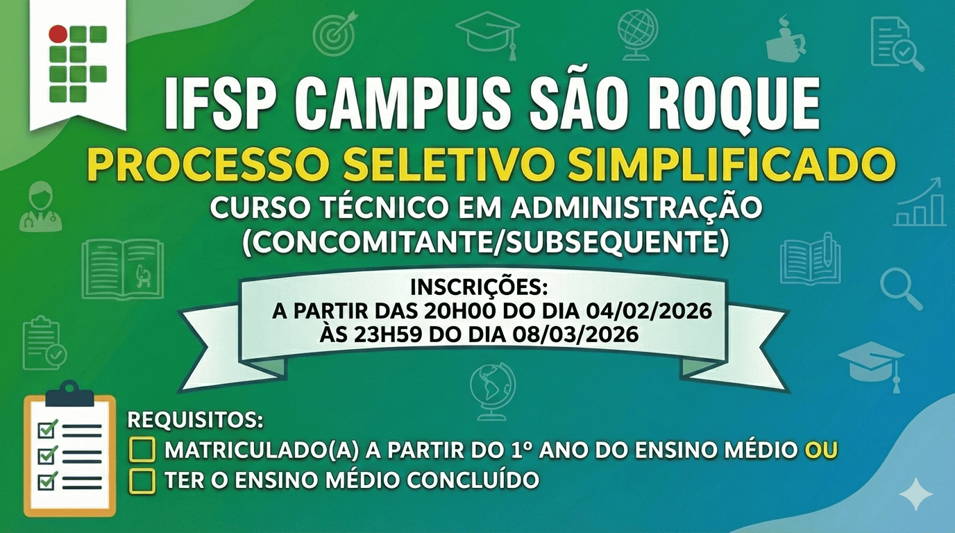 Pedimos atenção às publicações do site da Reitoria do IFSP e também do IFSP Câmpus São Roque para acompanhamento de novas informações relacionadas ao Processo Eleitoral para o Conselho de Câmpus do IFSP Câmpus São Roque.