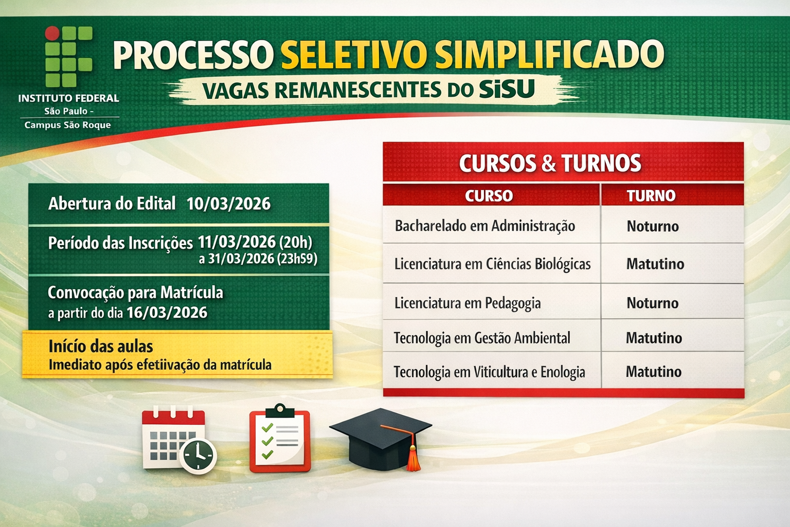 Processo Seletivo Simplificado - Vagas Remanescentes SiSU - 2026-1